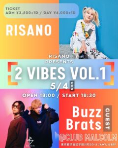 渋谷CLUB MALCOLMにてRISANO初主催LIVE 「2VIBES VOL.1」を開催します。
